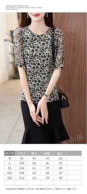 五分袖 シフォンブラウス 花柄 <BR><BR>