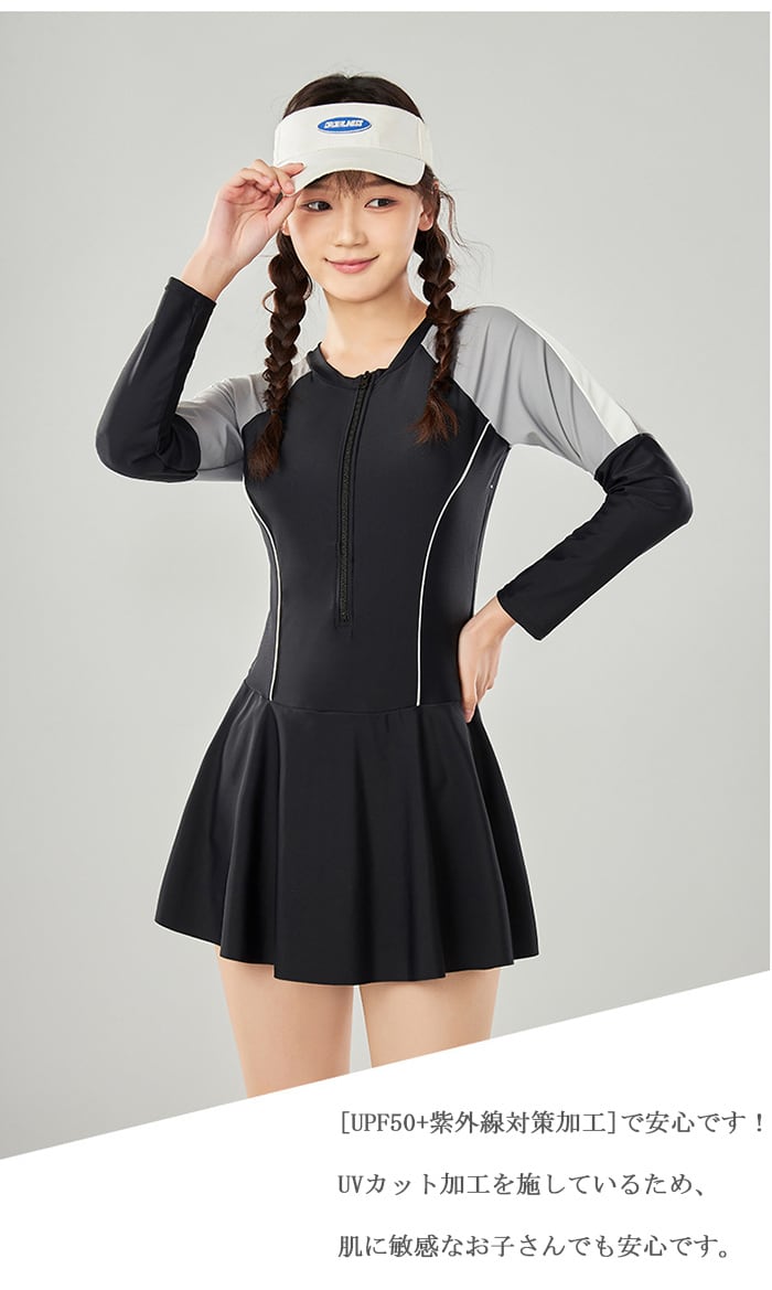水着 女の子 スクール水着 女の子 オールインワン ラッシュガード子供 キッズ 女の子 ワンピース水着 競技水着 キッズ みずぎ 半袖 中学生 日焼け防止 温泉 プール スカート 子ども用 スクール スイミング ラッシュガード みずぎ | TPSどんどん