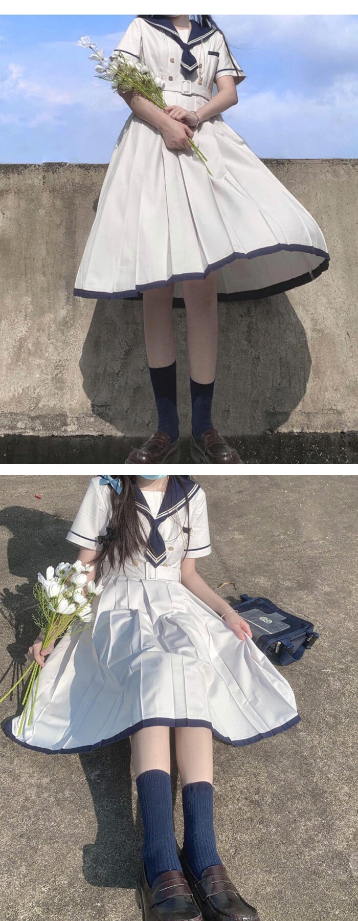 セーラー服 コスプレ 地雷系 ハロウィン 夏服 レディース かわいい 韓国 リボン 白 コン セットアップ セーラー襟 春 白いワンピース 夏 秋 半袖 ひざ丈 ミモレ丈 可愛い ワンピース セーラー服風 参戦服 ゆめかわいい やみかわいい | TPSどんどん