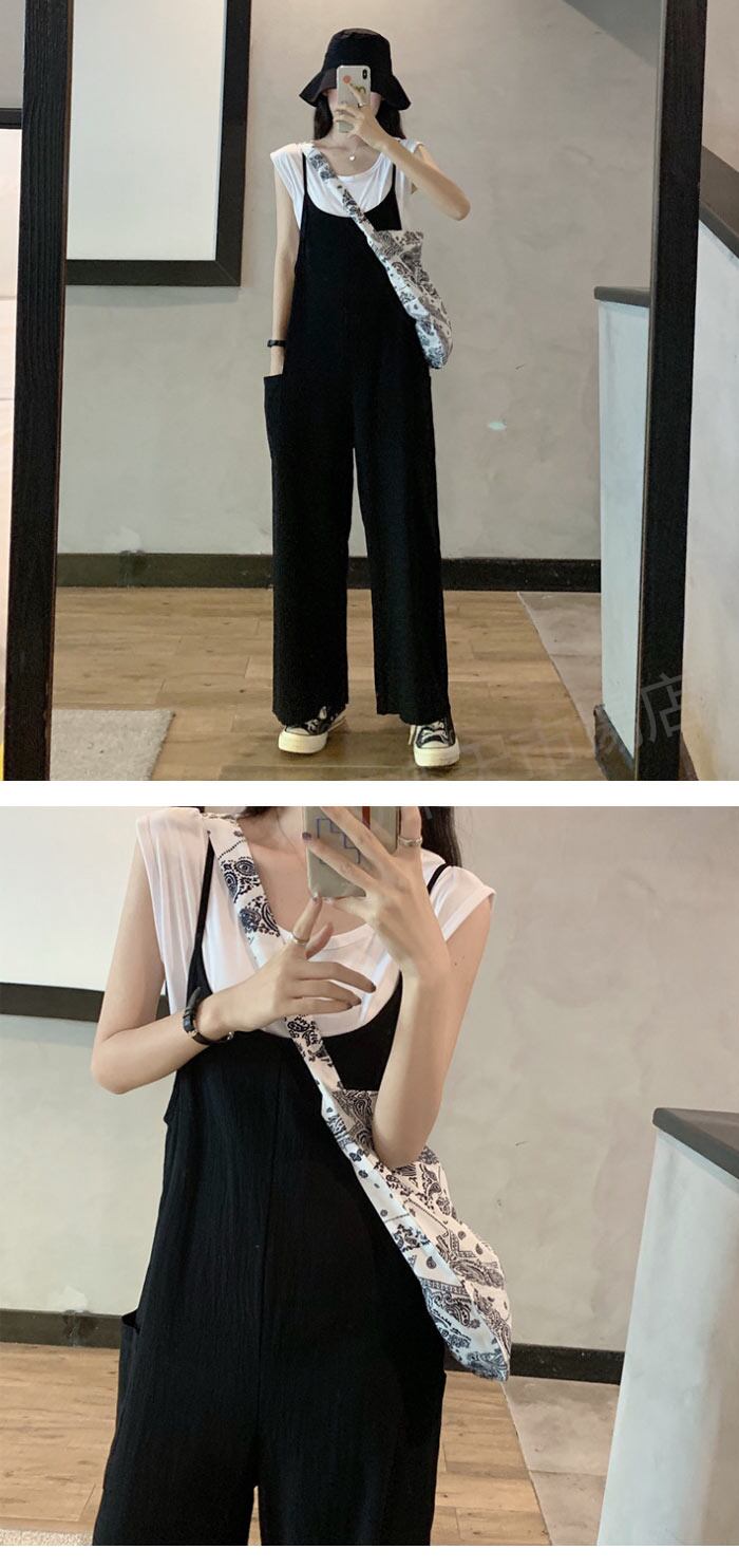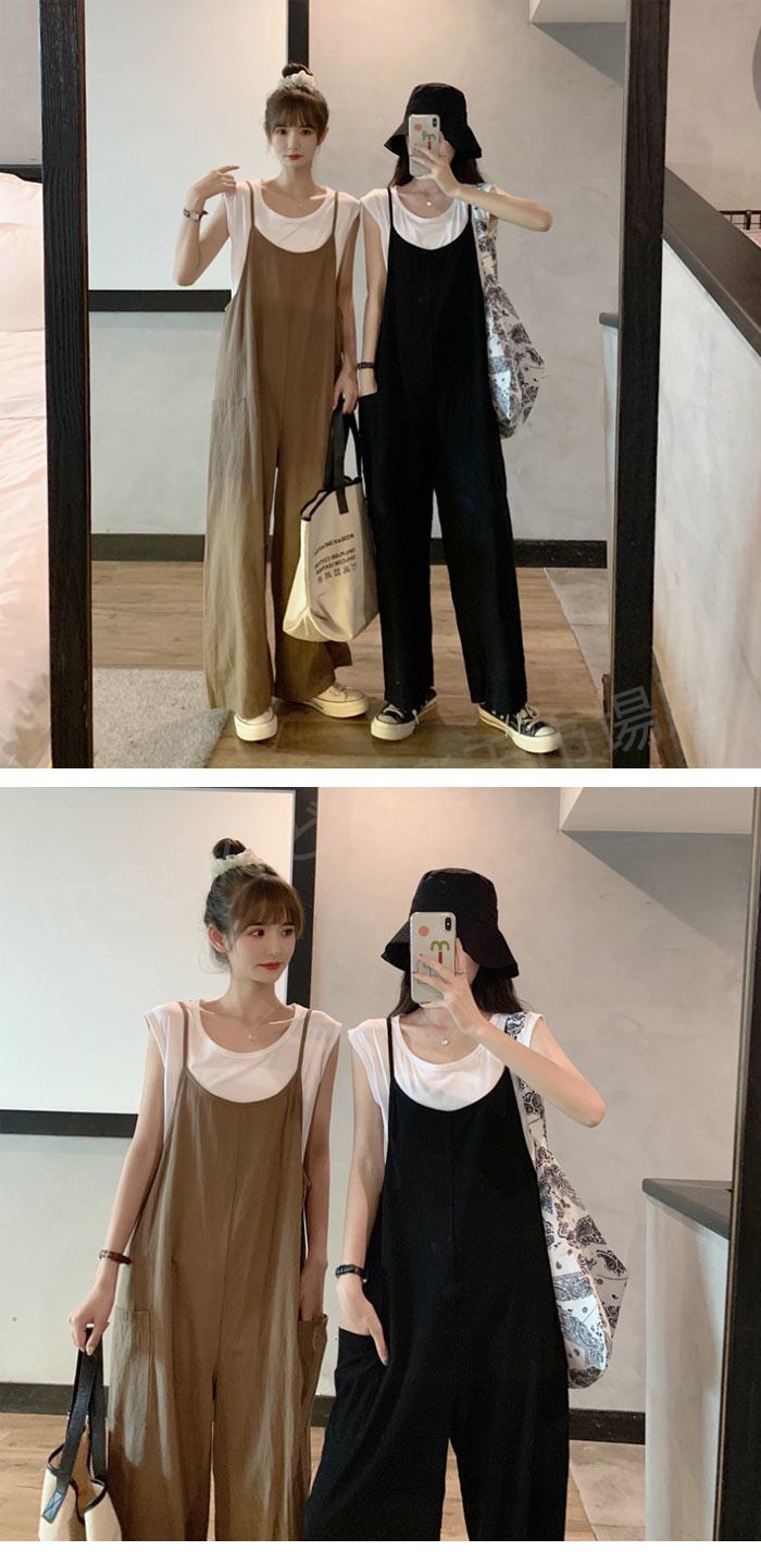 サロペット パンツ サロペット オールインワン レディース サロペットパンツ パンツドレス オーバーオール ワイドパンツ ガウチョパンツ ゆったり 体型カバー 着痩せ OL きれいめ 大きいサイズ ブラック 無地 送料無料 | TPSどんどん