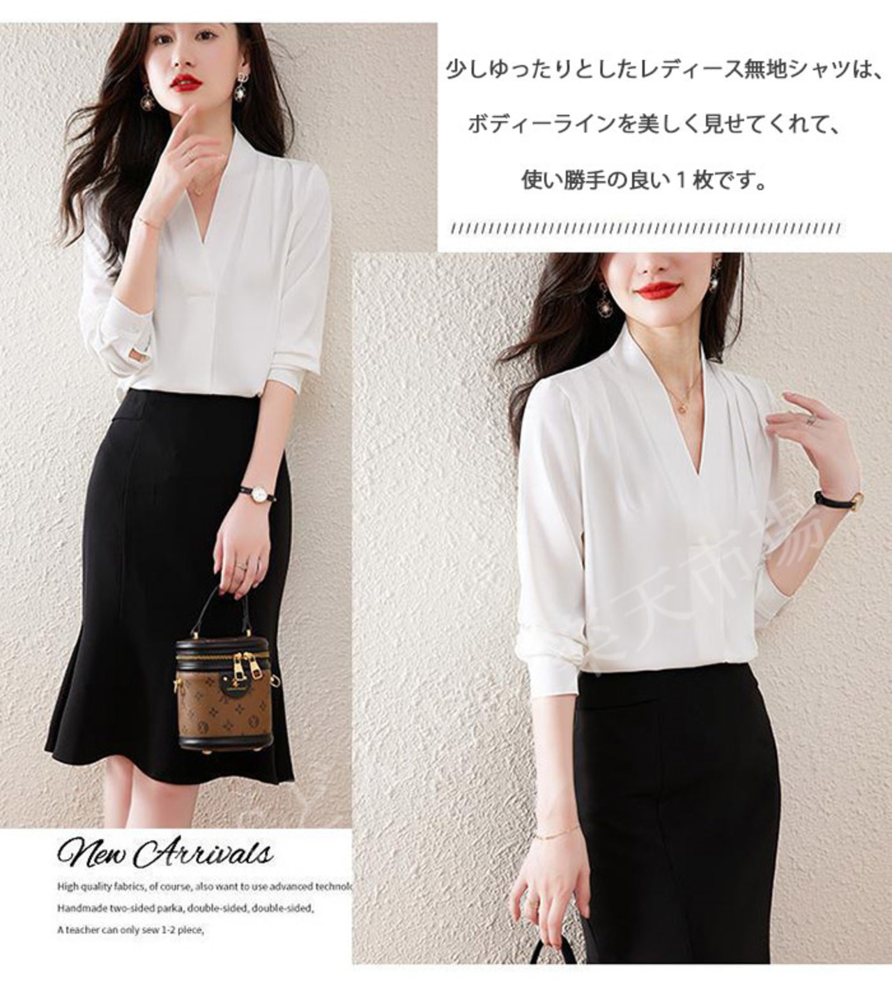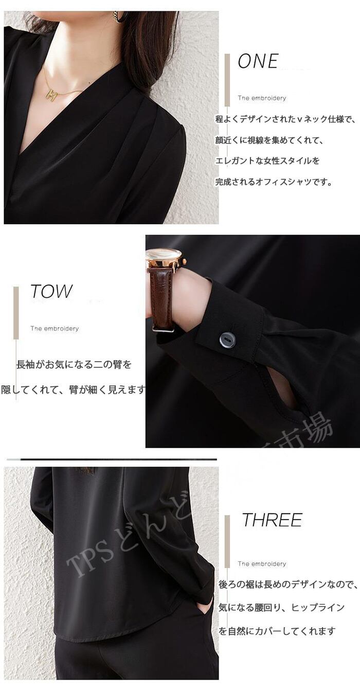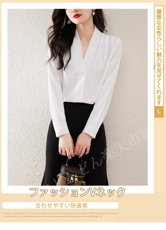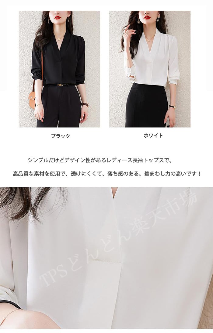 送料無料 ブラウス レディース 長袖 オフィス vネック tシャツ シャツ トップス 無地 春夏 プルオーバー カジュアル おしゃれ 通勤 スーツ インナー カットソー フォーマル きれいめ シフォン 涼しい 母 ママ S M L XL XXL | TPSどんどん