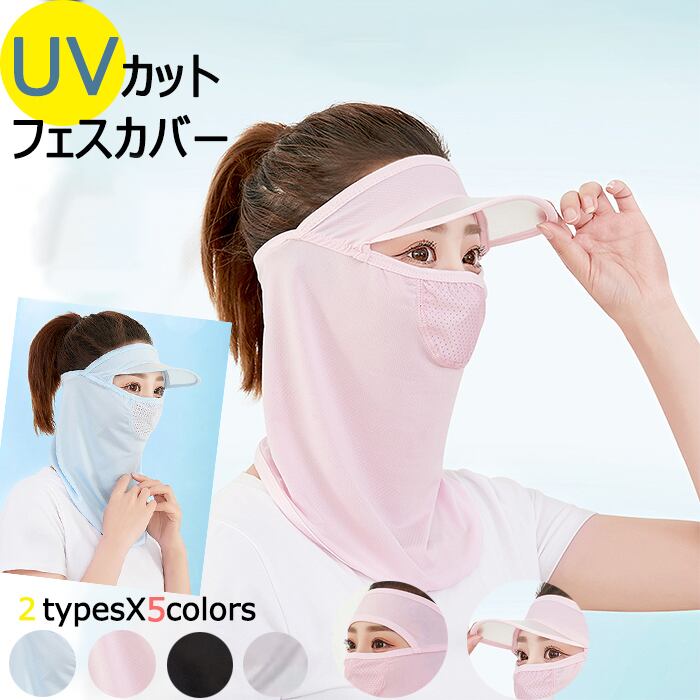 フェイスカバー UPF40+ 息苦しくない UVカット フェイスカバー つば付き 夏用 男女兼用 日焼け止め 紫外線対策 スポーツ ランニング ビューティー 5色 2デザイン ネックガード ネックカバー | TPSどんどん