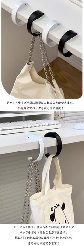 <p>ジャストサイズで袋に簡単に入れることができます。出先などでバッグを置く所に解決!テーブルや椅子、洗面台などに固定することでバッグをぶら下げることができます。机に引っかかる部分にはラバーが付いていてきちんと固定できます! </p>