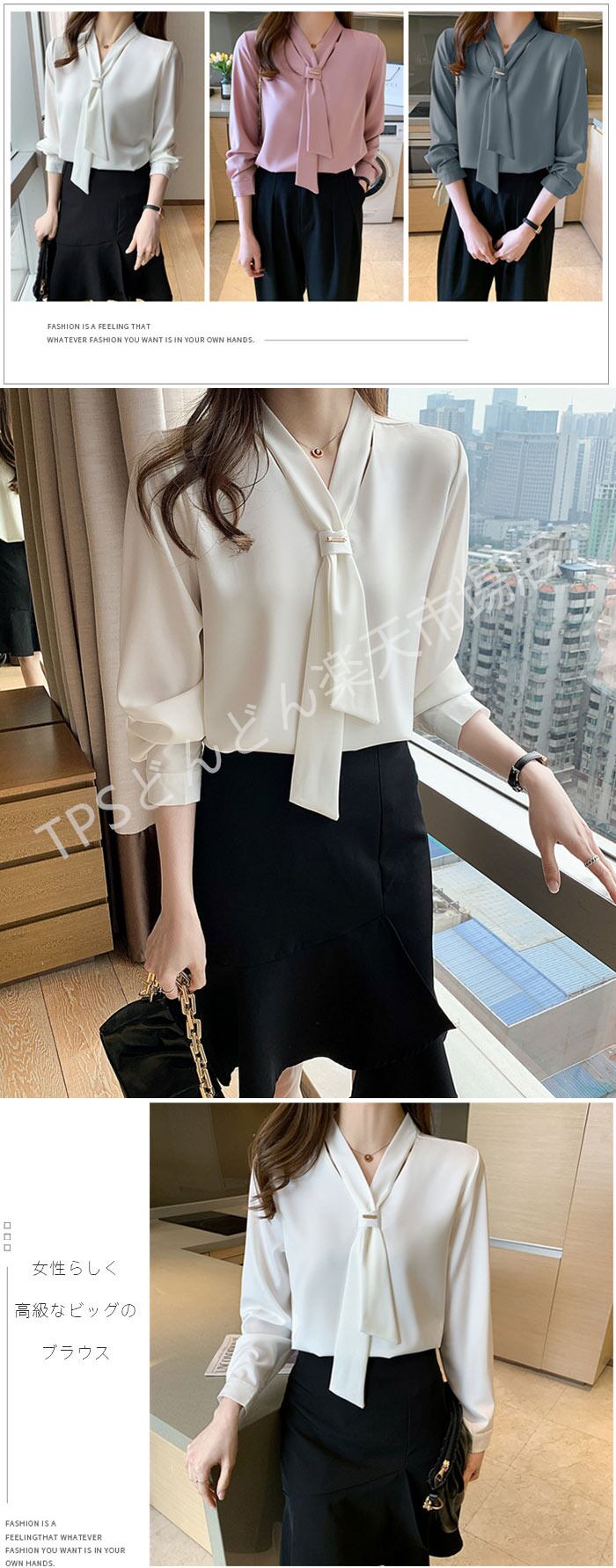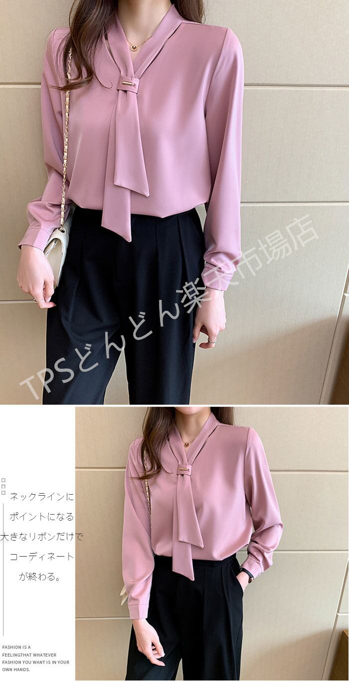 シャツ ブラウス レディース 長袖 おしゃれ リボントップス エレガント シフォン リボン フォーマルトップス トップス Vネック 落ち感 魅力 お洒落 長袖 無地 エレガント オフィス 着痩せ 上品 おしゃれ 可愛 通勤 デート お出掛け 秋 冬 春 秋 入園入学 卒業式 | TPSどんどん