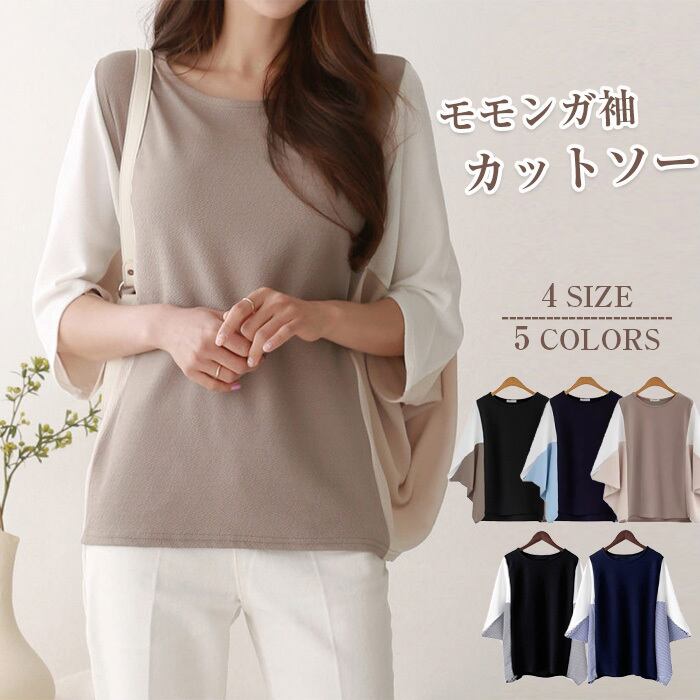 モモンガスリーブスタイルが可愛いデザインカットソーです。ドルマンスリーブの部分は紺色ストライプ柄のドッキングデザインは1枚でコーディネートが完成して、気楽におしゃれができる優れものです。</p>