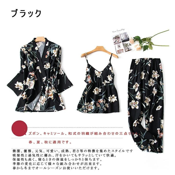 ルームウェア レディース 3点セット パジャマ 寝巻き ルームワンピース レディース 部屋着 可愛い 長袖 パンツ ズボン キャミソール 上下セット 秋 春 夏 和式 可愛い 長袖 長パンツ キャミソール 寝巻き 送料無料zch-pajamas02 | TPSどんどん