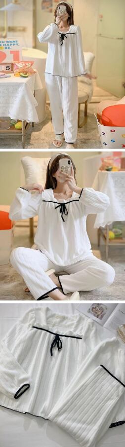 【ふわふわの生地】●黒いパイピングがアクセントになったルームウェア●胸元のリボンが女の子らしい雰囲気を演出<BR><BR>