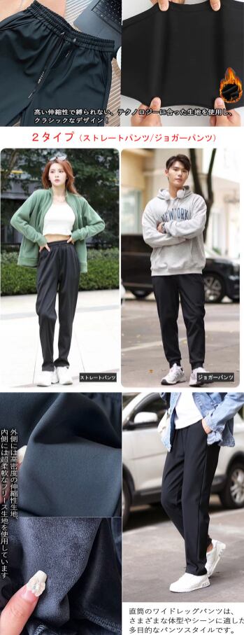 送料無料 ストレートパンツ メンズ 黒 美脚 裏起毛 ジョガーパンツ メンズ パンツ メンズ ビジネス カジュアル ビジカジ 秋冬 暖かい ストレッチ 蓄熱 暖かい ジョガー パンツ 厚手 秋冬 部屋着 ルームウェア 秋冬 暖 防寒 細身 レディース 男女兼用 | TPSどんどん