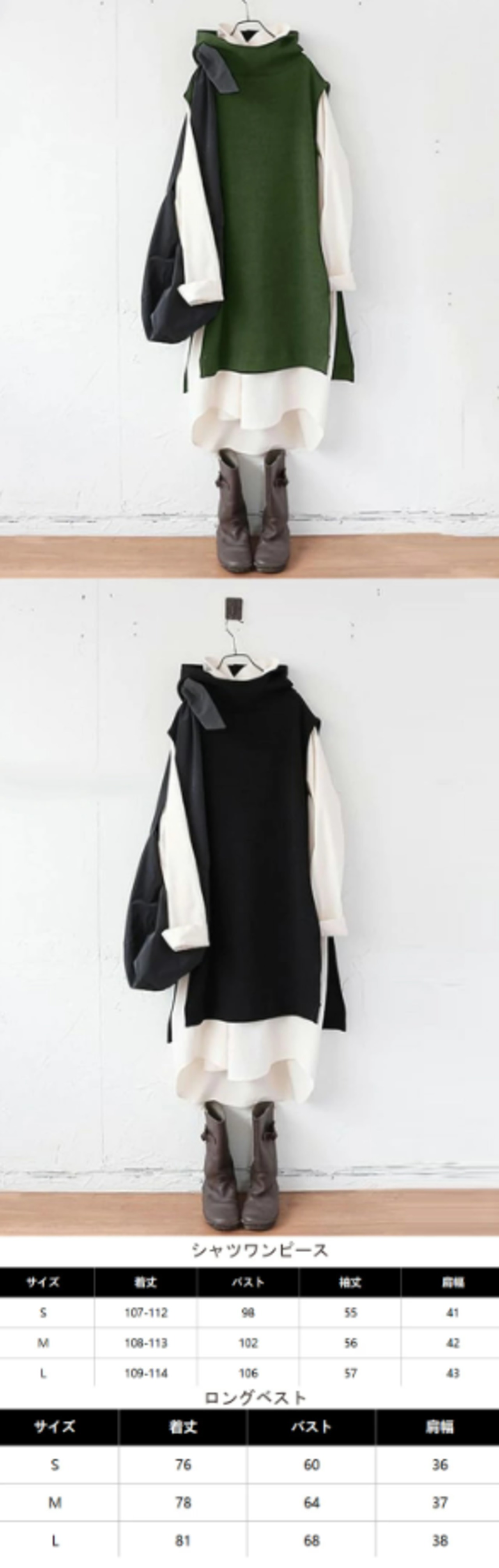 秋冬 レディース 2点セット ロングベスト&シャツワンピースhyy-ladyshirt131<BR><BR>