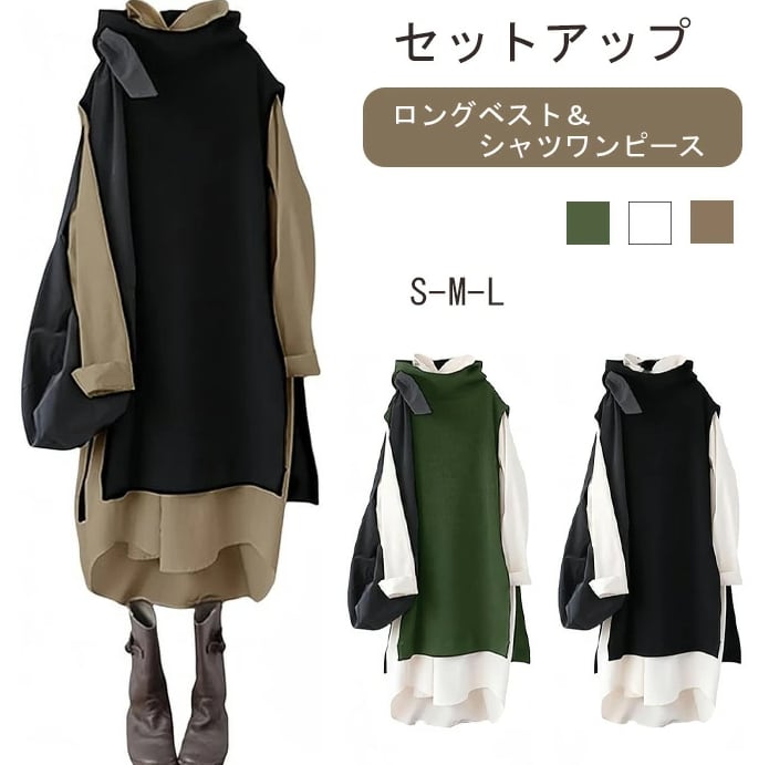 【送料無料】セットアップ レディース ワンピース ニットベスト シャツ きれいめ ゆったり 大きめ セットアップ レディース きれいめ カジュアル 春 秋 冬 シャツワンピース スカートスーツセットアップ ロング エレガント 通勤 OL | TPSどんどん