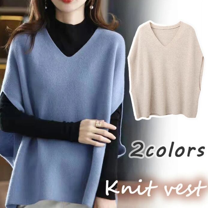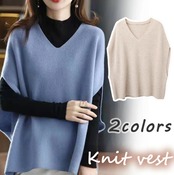 ニットベスト レディース vネック ファッション 大きいサイズ 秋冬 ベスト ポンチョ ローゲージニット チャンキーニット レイヤード 秋 フレンチスリーブ 無地 カジュアル レイヤード ゆったり ドルマン スリット ラウンドネック ダークエンジェル | TPSどんどん