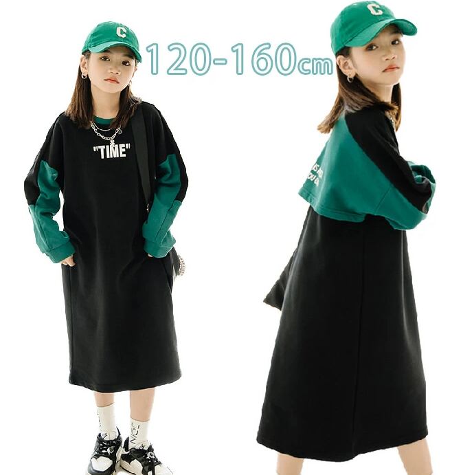 韓国子供服 子供 ワンピース 女の子 長袖 スウェットワンピース ガールズ 切り替え 女の子 ワンピース 大きめ レイヤード風 デザイン キッズ ワンピース ゆったり カジュアル ロング トレーナー 春秋 学生 ワンピース 体型カバー 通学着 旅行 120 130 140 150 160cm | TPSどんどん