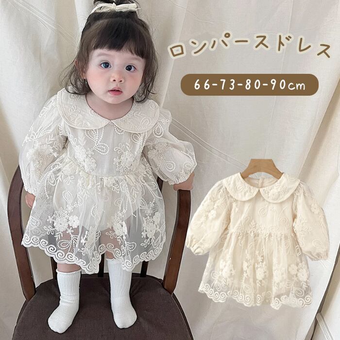【送料無料】 ベビー ロンパース ワンピース 長袖 ドレス 女の子 ベビー服 チュールワンピース ベビードレス 66 73 80 90 セレモニードレス お宮参り 新生児 フォーマル 結婚式 赤ちゃん 誕生日 入園式 子供服 入園式 襟付き | TPSどんどん